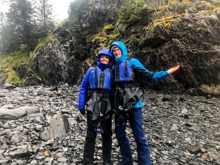 It rained the entire time during our trip, so I had bundled up in all of my warmest layers with waterproof outer layers. If you don’t have waterproof layers with you, you can borrow some from Liquid – the other two on our trip did that and were very happy with how dry they stayed! Josh and Erin gave us kayak “skirts” to keep the water out of the boats and outfitted us with neoprene mitts to put our hands in while we paddled.