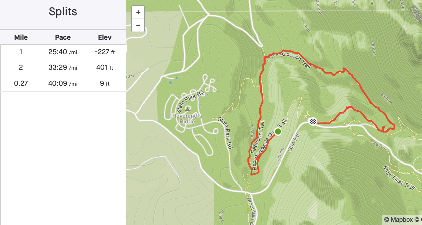 The trail map and various places online said this hike was more than three miles long, but it’s actually almost a mile shorter than that. My watch missed the first section (see screenshot below) but measured our hike at 2.3 miles, so I can’t imagine it’s more than 2.5 miles round trip. It took us about an hour and a half, including several breaks, photo ops, and my mad dash into the woods to find a spot to pee (thanks third trimester).